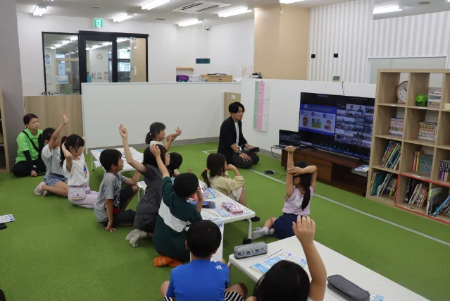 見え方を体験するワークやクイズ、ダンスを交えながら、「見ることの大切さ」や「目の健康を守る方法」を楽しく学ぶプログラムです。全国30か所の学童保育施設と家庭をオンラインでつなぎ、約1,500名の子どもたちが参加しました。