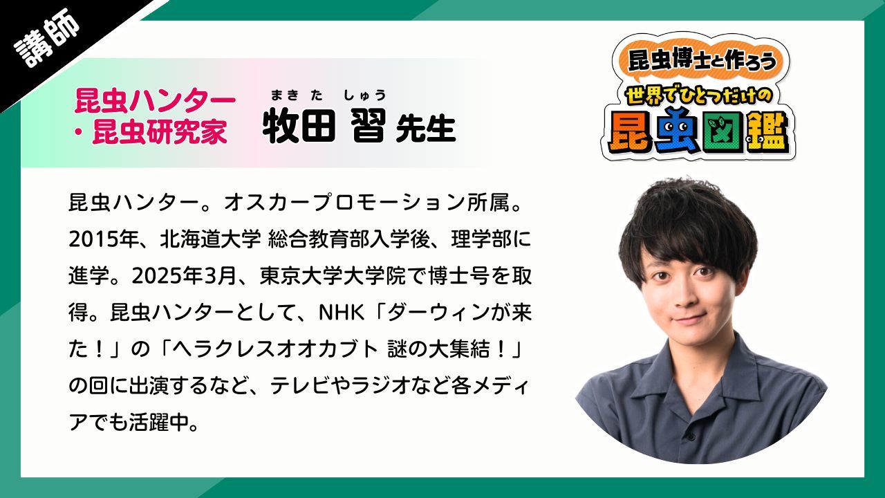╰━━━━━━━━━━━━━━━━━━━━━━━━━━━━━━━━╯昆虫研究者(東大博士課程修了)で、NHK「ダーウィンが来た!」にも出演経験がある、昆虫ハンター牧田習さんの新シリーズ!