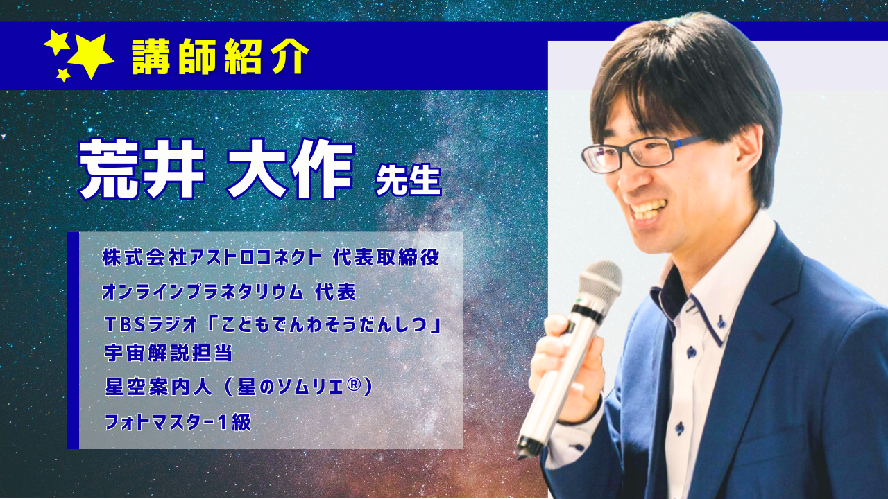 ◎講師:荒井 大作(星空案内人「星のソムリエ®」)