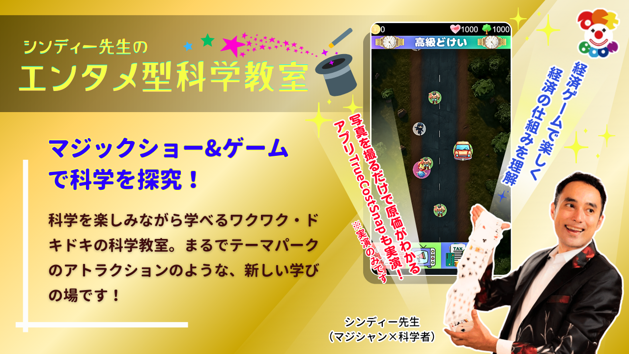マジックやゲームを通して「経済」をまなびます!”億万長者”になりたければ、「経済」のしくみを理解しよう!
