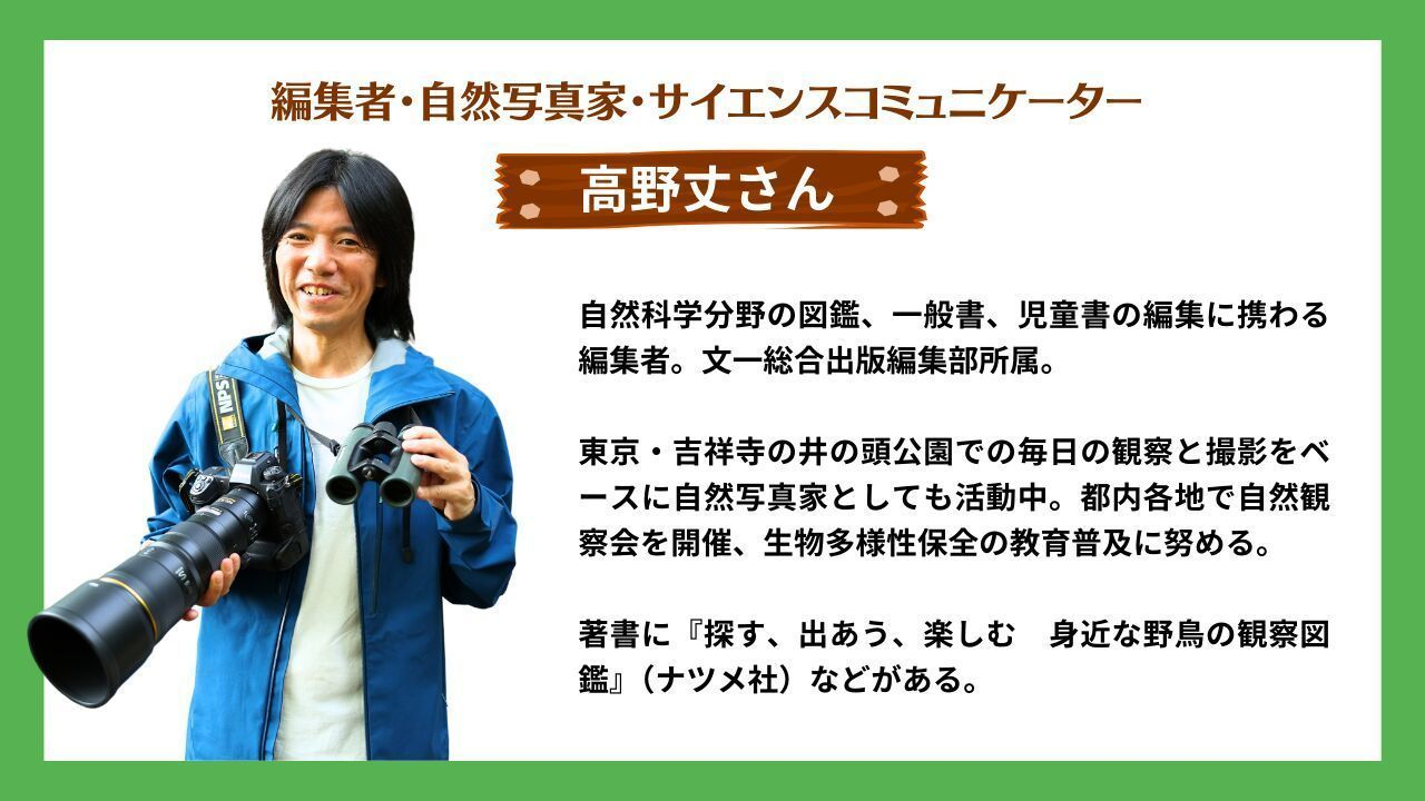 野鳥や自然観察の図鑑を多数手がける髙野先生から聞きましょう!<髙野先生からのご案内>