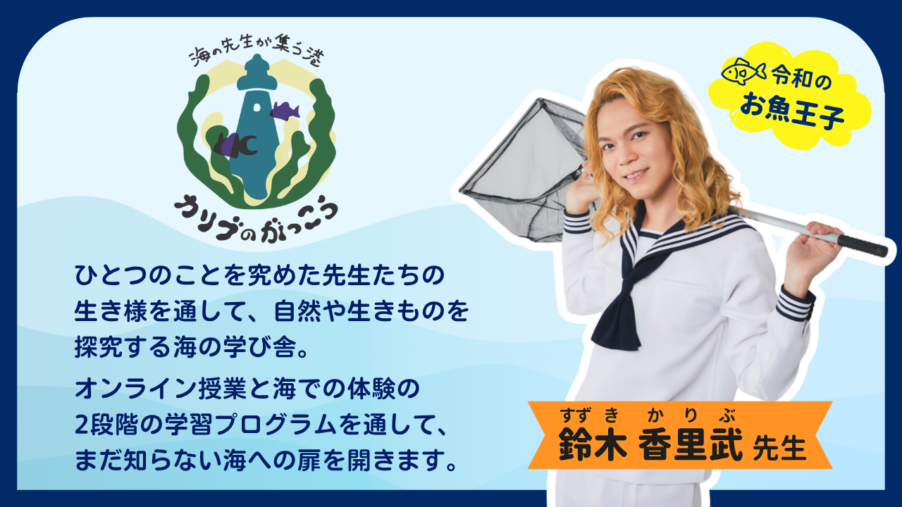 なぜカタチを変えるのか?海のいきものの生き残りの戦略や成長のヒミツにせまります!先生は、「幼魚水族館」の館長で、岸壁幼魚採集家としてメディアに多数出演されているカリブ先生と、全国・世界の水族館を取材し、ユニークな「海のいきもの」の授業を開催する"海の噺家"たろちゃんです✨